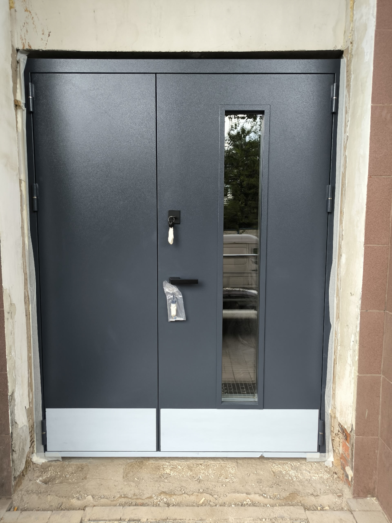 Двухстворчатая конструкция создана для широких проёмов: складские и производственные зоны, места, где периодически требуется пройти с габаритной тарой или оборудованием. В быту это тамбуры и широкие подъездные порталы. Часто одна створка — рабочая, вторая фиксируется шпингалетами и открывается по требованию.