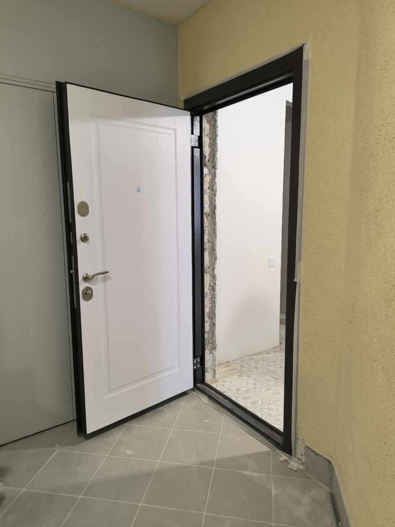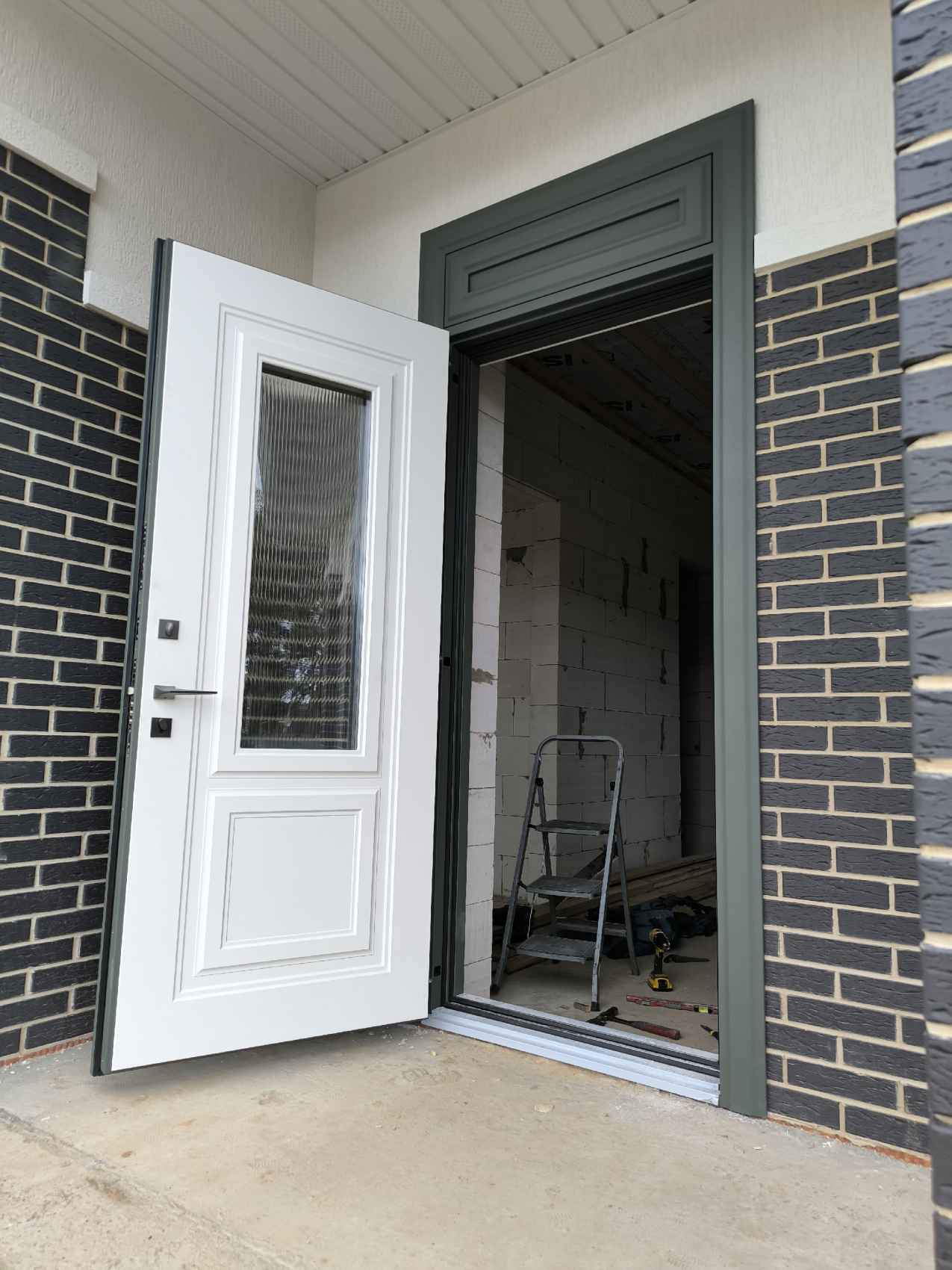Если дверь работает в тёплом контуре, стекло помогает сориентироваться и снизить эффект глухой стены. На уличных узлах чаще остаются глухие полотна: так проще с теплоизоляцией и стойкостью к вандализму. Компромисс — небольшие смотровые окна выше уровня ручки.